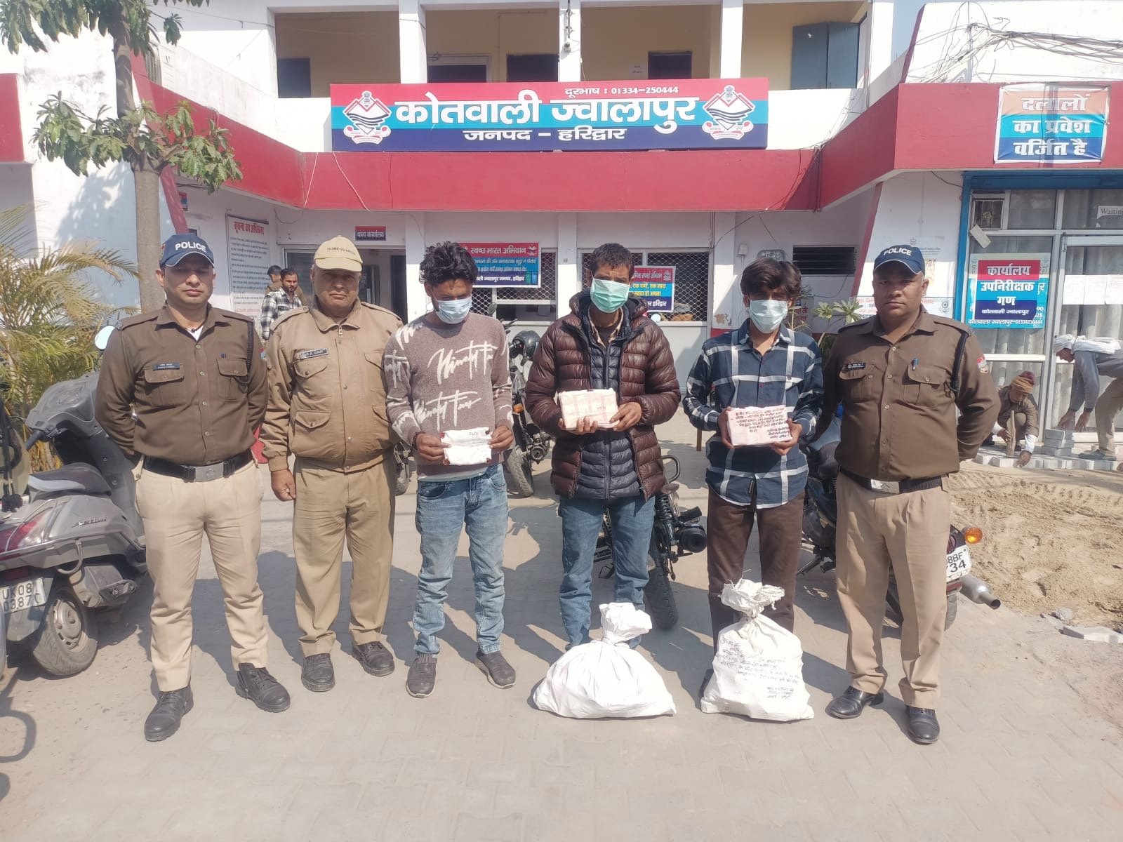 शराब तस्करी और सट्टे की खाईबाड़ी कर रहे तीन दबोचेज्वालापुर कोतवाली पुलिस ने देशी शराब की तस्करी और सट्टे की खाईबाड़ी कर रहे तीन लोगों को गिरफ्तार किया है। अलग-अलग स्थान से धरे गए आरोपियों के कब्जे से देशी शराब के 102 पव्वे, सट्टा सामग्री ओर 1450 रूपए की नकदी