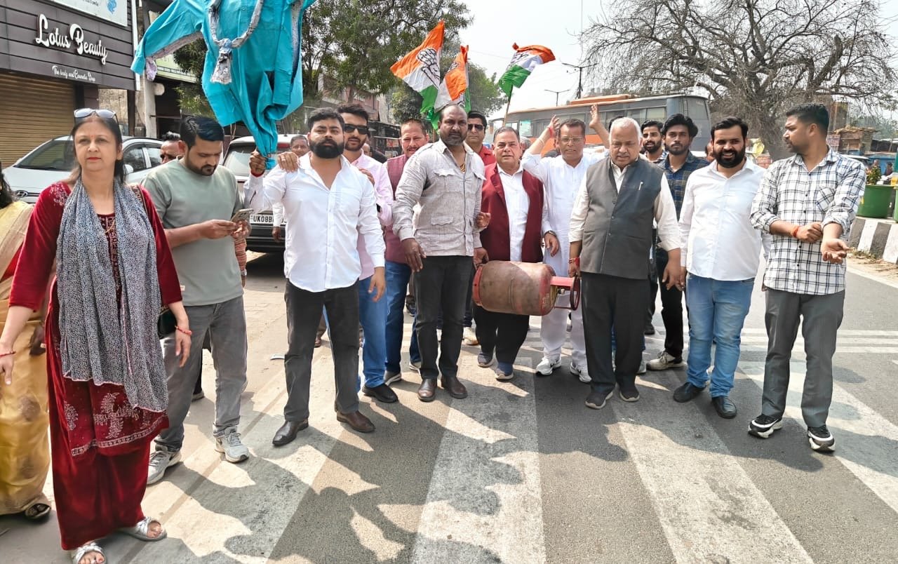 रसोई गैस की कीमत बढ़ाए जाने पर कांग्रेस कार्यकर्ताओं ने किया केंद्र सरकार के खिलाफ प्रदर्शनहरिद्वार, 8 मार्च। घरेलू रसोई गैस सिलेंडर के दामों में बढ़ोतरी के विरोध में युवा कांग्रेस के कार्यकारी शहर अध्यक्ष विशाल प्रधान के नेतृत्व में कार्यकर्ताओं ने ऋषिकुल तिराहे पर केंद्र सरकार के खिलाफ प्रदर्शन