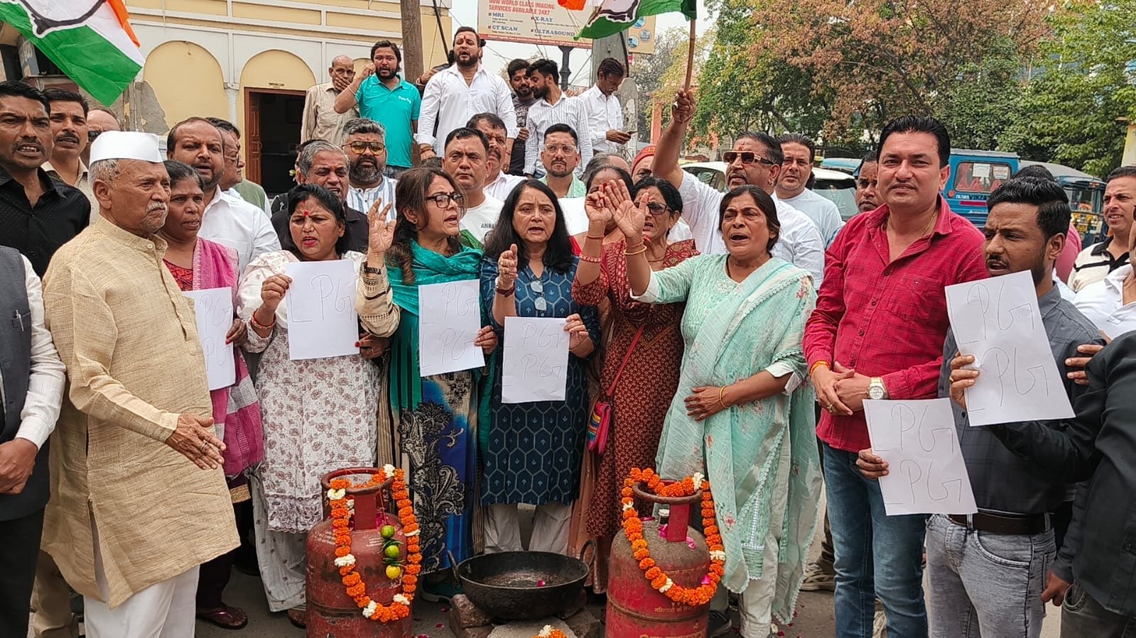 कांग्रेस का गैस सिलेंडर की किल्लत पर विरोध, शिवमूर्ति तिराहे पर चूल्हा जलाकर किया प्रदर्शन