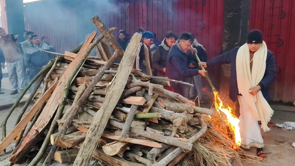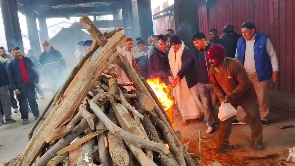 श्री बलवीर सिंह नेगी के पुत्र श्री ने उनके पार्थिव शरीर को मुख्याग्नि दी