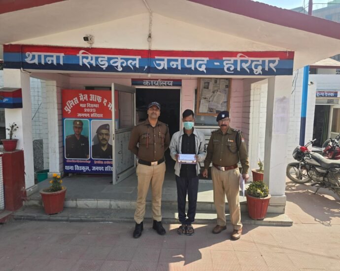 थाना सिडकुल पुलिस ने घर से मोबाईल फोन चोरी करने के आरोपी को गिरफ्तार कर उसके कब्जे से चोरी किया गया मोबाइल फोन बरामद किया है। 7 फरवरी को सुरेश सिंह ने पुलिस को तहरीर देकर अज्ञात चोर द्वारा घर से मोबाइल चोरी करने के संबंध में मुकद्मा दर्ज कराया था। आरोपी की तलाश कर रही पुलिस ने रविवार को मेट्रो अस्पताल जाने वाले रास्ते से आकाश पुत्र सोहनवीर निवासी पाल विहार कालोनी ब्रह्मपुरी को चोरी के मोबाइल समेत दबोच लिया। पुलिस टीम में थानाध्यक्ष नितेश शर्मा, एसएसआई देवेन्द्र तोमर, अपर उपनिरीक्षक संजय चौहान, कांस्टेबल प्रदीप व होमगार्ड सुनील कुमार शामिल रहे।