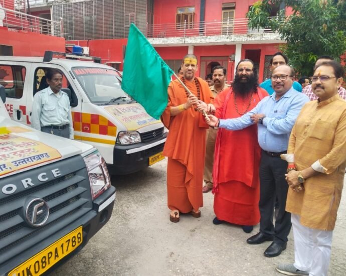 हरिद्वार, 5 जुलाई। अखिल भारतीय अखाड़ा परिषद एवं मनसा देवी मंदिर ट्रस्ट के अध्यक्ष श्रीमहंत रविंद्रपुरी महाराज ने कांवड़ मेले के दौरान शिवभक्तों को स्वास्थ्य सेवा उपलब्ध कराने के लिए स्वास्थ्य विभाग को दो एंबुलेंस उपलब्ध करायी हैं। शनिवार को निरंजनी अखाड़े में निंरजन पीठाधीश्वर आचार्य महामंडलेश्वर स्वामी कैलाशानंद गिरी महाराज, अखाड़ा परिषद अध्यक्ष श्रीमहंत रविंद्रपुरी महाराज, सीएमओ डा.आरके सिंह व वरिष्ठ भाजपा नेता डा.विशाल गर्ग ने हरी झंडी दिखाकर एंबुलेंस को रवाना किया।