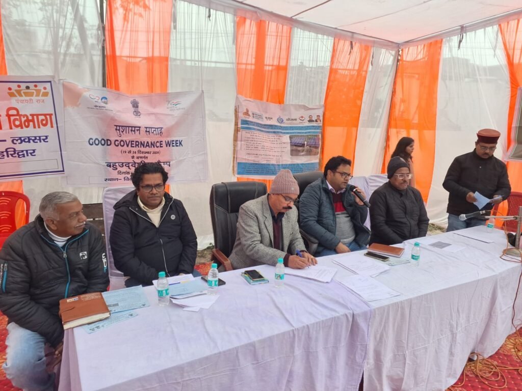 आज दिंनाक 23.12.2024 को प्रशासन गांव की ओर अभियान के अर्न्तगत विकास खण्ड कार्यालय में बहुउददेशीय शिविर का आयोजन किया गया। श्री सौरभ असवाल उपजिलाधिकारी लक्सर एंव श्री प्रताप चौहान तहसीलदार लक्सर तथा श्री पंवन सिंह सैनी खण्ड विकास अधिकारी लक्सर व श्री अंशुल राठी सहा० समाज कल्याण अधिकारी के द्वारा कार्यक्रम का शुभारम्भ किया गया। बहुउददेशीय शिविर मे कृषि विभाग, एन०आर०एल०एम०, बाल विकास विभाग, उद्यान विभाग, स्वजल विभाग, लघु सिचाई विभाग, ग्राम्य विकास विभाग, गन्ना विभाग, खाद्वय विभाग, स्वास्थ्य विभाग, विद्युत विभाग, पशु पालन विभाग, उरेडा विभाग, जिला उद्योग विभाग, राजस्व विभाग दुध उत्पादन सहकारी समिति विभाग आदि विभागो द्वारा प्रतिभाग करते हुये अपने विभाग से सम्बन्धित योजनाओ की जानकारी प्रदान की गई जिसमे लगभग 150 ग्रामवासियो द्वारा भाग लिया गया
