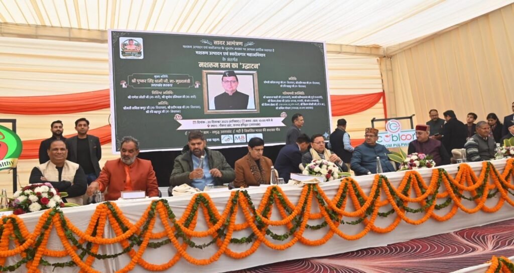 मुख्यमंत्री पुष्कर सिंह धामी ने हरिद्वार जनपद के बुग्गावाला में एमबी फूड्स द्वारा विकसित ‘मशरूम ग्राम’ का शुभारंभ किया। इस अवसर पर उन्होंने कहा कि यह पहल किसानों की आय बढ़ाने, ग्रामीण अर्थव्यवस्था को सशक्त करने और कृषि क्षेत्र में नवाचार को प्रोत्साहित करने की दिशा में एक महत्वपूर्ण कदम है। मुख्यमंत्री ने एमबी फूड्स की टीम के प्रयासों की सराहना करते हुए कहा कि मशरूम उत्पादन कम भूमि, कम जल और कम समय में अधिक लाभ देने वाला प्रभावी उद्यम है, जिससे किसान अतिरिक्त आय अर्जित कर सकते हैं।