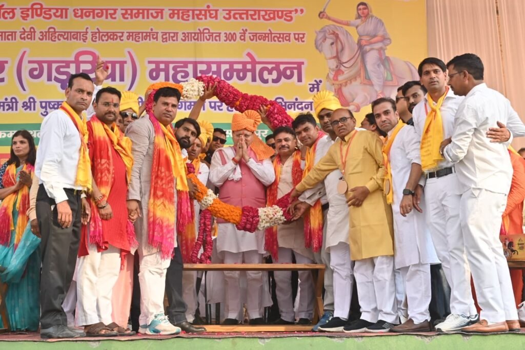 हरिद्वार 08 जून 2025 मुख्यमंत्री श्री पुष्कर सिंह धामी ने हरिद्वार में धनगर समाज द्वारा आयोजित लोकमाता अहिल्याबाई होल्कर की त्रिशताब्दी जयंती कार्यक्रम में प्रतिभाग किया