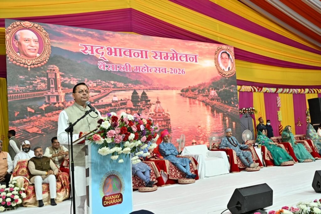 मुख्यमंत्री श्री पुष्कर सिंह धामी ने आज हरिद्वार में ऋषिकुल मैदान में आयोजित “मानव सेवा एवं उत्थान समिति” के सद्भावना सम्मेलन, बैसाखी महोत्सव 2026 में प्रतिभाग करते हुए कहा कि भारत की सनातन संस्कृति सदैव से ‘वसुधैव कुटुम्बकम्’ के सिद्धांत पर आधारित रही है, जो पूरे विश्व को एक परिवार के रूप में देखने का संदेश देती है।