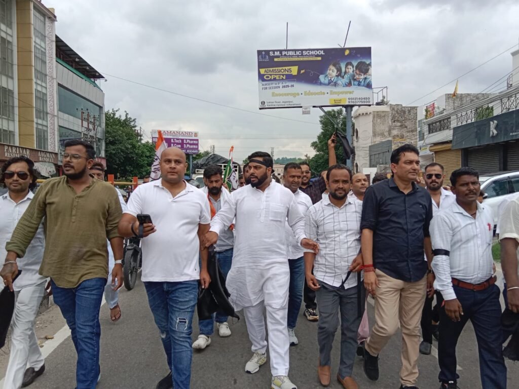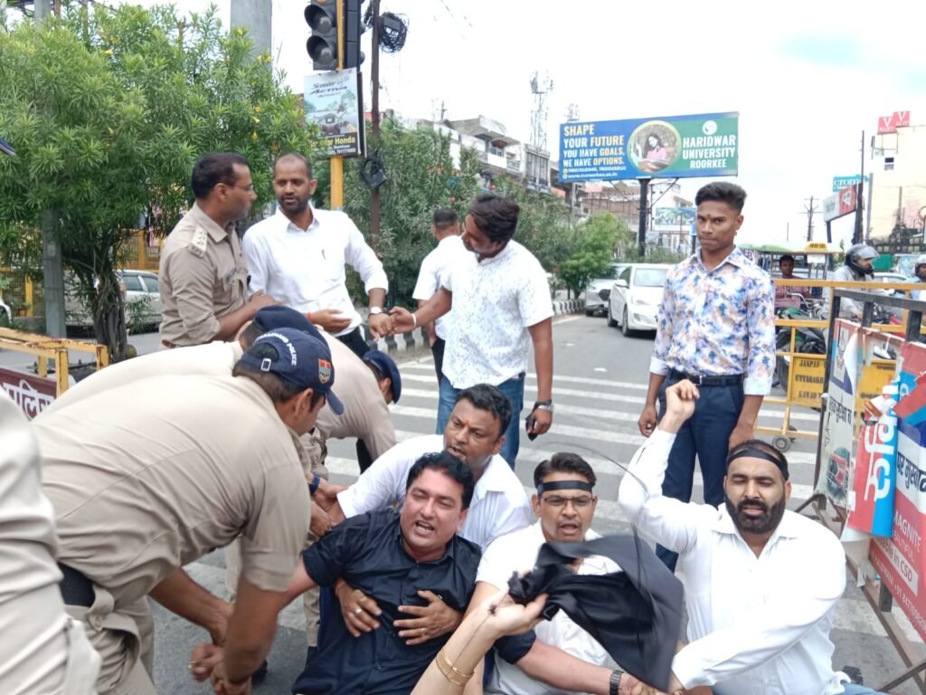 आज कांग्रेस के कार्यकर्ताओं ने उत्तराखंड कांग्रेस कमेटी के पूर्व महासचिव वरूण बालियान के नेतृत्व में मुख्यमंत्री धामी के हरिद्वार पहुंचने का काले झंडे लेकर विरोध किया।