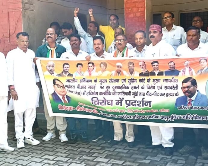भाजपा की सरकारों में देश और प्रदेशों में दलितों पर लगातार हो रही अत्याचार की घटनाओं से आक्रोशित हरिद्वार कांग्रेस के अनुसूचित विभाग के जिलाध्यक्ष तीर्थपाल रवि और महानगर कांग्रेस अध्यक्ष अमन गर्ग के संयुक्त तत्वाधान में कांग्रेस कार्यकर्ताओं ने आज नगर मजिस्ट्रेट कार्यालय पर प्रदर्शन कर नगर मजिस्ट्रेट की अनुपस्थिति में उनके प्रतिनिधि अंशुल चौहान के द्वारा महामहिम राष्ट्रपति को ज्ञापन प्रेषित किया। प्रेषित ज्ञापन में महामहिम राष्ट्रपति को अवगत कराया कि पिछलें कुछ समय से देश में अनुसूचितजाति समाज के लोगों के ऊपर आपराधिक घटनाओं में अप्रत्याशित रूप से वृद्धि हो रही है। जिससे दलित शोषित वंचित समाज में भय और डर का माहौल व्याप्त है। अभी हाल ही में उत्तर प्रदेश के रायबरेली में हरिओम वाल्मिकी नामक एक अनुसूचितजाति के युवक की पीट-पीट कर सामंती विचारधारा के लोगों के द्वारा नंगा करके हत्या कर दी गयी। यही नहीं सबसे बड़ी घटना सुप्रीम कोर्ट में घटित हुई जहाँ सर्वोच्च न्यायालय के मुख्य न्यायाधीश श्री बी.आर. गवई l महोदय पर जूता फेक कर मारने का प्रयास किया गया। यह न केवल न्यायालय की अवमाना है बल्कि भारतीय न्याय पालिका की गरिमा पवित्रा एवं सैंविधानिक कुर्सी पर बैठे व्यक्ति पर सीधा हमला है। जो अत्यन्त शर्मनाक एवं निन्दनीय है। सर्वोच्च न्यायालय के मुख्य न्यायधीश भारतीय संविधान के सबसे बड़े रक्षक और देश की न्याय व्यवस्था मुख्य संरक्षक होते है। और उक्त घटना से ऐसा प्रतीत होता है कि हमलावर वकील ने जातिवादी मानसिकता, नफरत और घृणा के कारण ही मुख्य न्यायधीश बी आर० गवई साहब पर हमला किया। इस घटना को अन्जाम देने वाले अपराधी वकील का लाईसेंस रद्द करके देशद्रोह का मुकदमा कायम कर कठोर से कठोर कार्यवाही की जाये, जिससे भविष्य में ऐसी घटना की पुनरावृत्ति न हो। ये घटनाऐं देश में अनुसूचितजाति वर्ग, अल्पसंख्यक वर्ग एवं शोषित वंचित समाज पर हो रहे अत्याचार और उनके प्रति नफरत और घृणा को प्रदर्शित करती है। जब इस देश में सर्वोच्च न्यायालय के मुख्य न्यायधीश के पद पर आसीन अनुसूचितजाति वर्ग, अल्पसंख्यक वर्ग एवं शोषित वंचित समाज का व्यक्ति सुरक्षित नही तो सम्पूर्ण समाज की स्थिति और भय के वातावरण को महसूस किया जा सकता है।