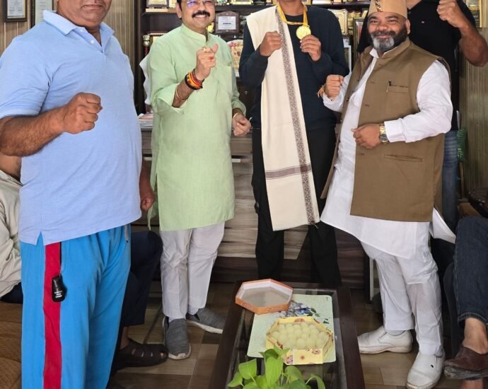 जिला मुक्केबाजी संघ ने किया सीबीएसई नेशनल बॉक्सिंग चैंपियनशिप में स्वर्ण पदक जीतने वाली सेम चौधरी को सम्मानित