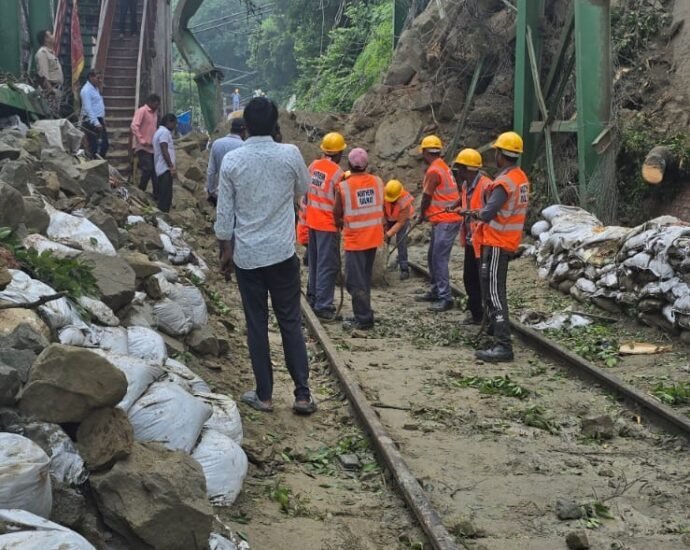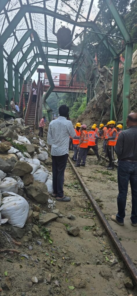 हरिद्वार 08 सितंबर 2025 जिला आपदा प्रबंधन अधिकारी मीरा रावत ने अवगत कराया है कि भीमगोड़ा काली मंदिर के समीप पहाड़ी से भूस्खलन होने के कारण रेलवे लाइन बाधित हो गई है सूचना प्राप्त होते ही आपदा प्रबंधन टीम मौके पर पहुंच गई है,बाधित हुए रेलवे लाइन से मलबा हटाने का कार्य शुरू कर दिया गया है। 2025-09-08