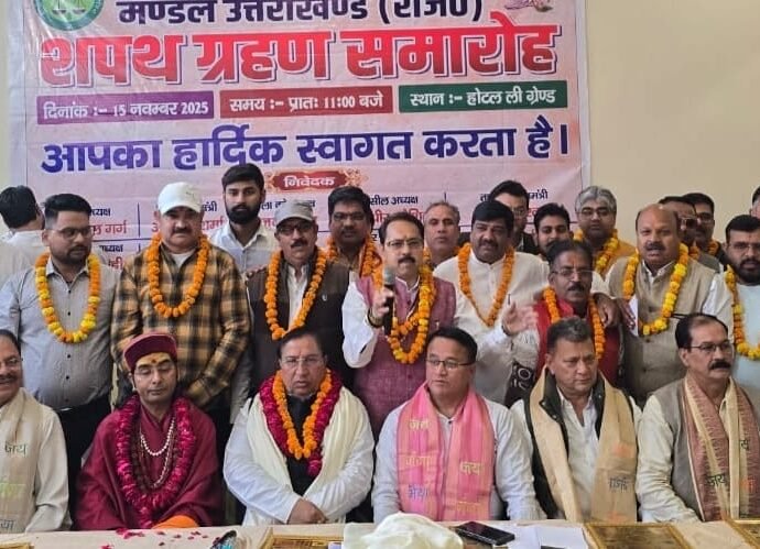 प्रांतीय नगर उद्योग व्यापार मंडल के जिला अध्यक्ष डा.विशाल गर्ग ने कहा कि सभी एकजुट होकर व्यापारियों के हितों के लिए काम करेंगे। मिलकर व्यापार मंडल को सफलता की नई ऊंचाईयां प्रदान करेंगे। धर्मनगरी में आयोजित होने वाले विभिन्न पर्वों में व्यापारी विशेष भूमिका निभाते हैं। आने वाले कुंभ मेले में भी व्यापारी अपना पूर्ण सहयोग सरकार और प्रशासन को देंगे। उन्होंने कहा कि व्यापारियों का उत्पीड़न किसी भी सूरत में सहन नहीं किया जाएगा। उन्होंने शपथ ग्रहण समारोह में शामिल होने आए विभिन्न जनपदों के व्यापारियों सहित सभी का आभार जताया। तहसील अध्यक्ष पंडित अधीर कौशिक ने कहा कि व्यापारी प्रशासन के साथ हमेशा सहयोग करता है। प्रशासन को भी व्यापारियों का सहयोग करते हुए उनकी समस्याओं का समाधान करना चाहिए। इस दौरान गंगोत्री रावल शिव प्रकाश, वरिष्ठ भाजपा नेता दर्जा मंत्री ओमप्रकाश जमदग्नि, शहर व्यापार मंडल अध्यक्ष प्रवीण शर्मा ने भी विचार रखे और नवगठित कार्यकारिणी को बधाई और शुभकामनाएं दी। हल्द्वानी से शपथ ग्रहण में शामिल होने पहुंचे राजीव अग्रवाल, वीरेंद्र गुप्ता, राजेंद्र, पूरनलाल शाह आदि का शिवकुमार कश्यप एवं मयंक मूर्ति भट्ट ने फूलमाला पहनाकर स्वागत किया। शहर इस अवसर पर वरिष्ठ व्यापारी नेता सुरेंद्र भटेजा, उदयराम सेमवाल, समाजसेवी जगदीश लाल पाहवा, पवन कृष्ण शास्त्री सहित बड़ी संख्या में व्यापारी मौजूद रहे। मंच संचालन विश्वास सक्सेना ने किया।
