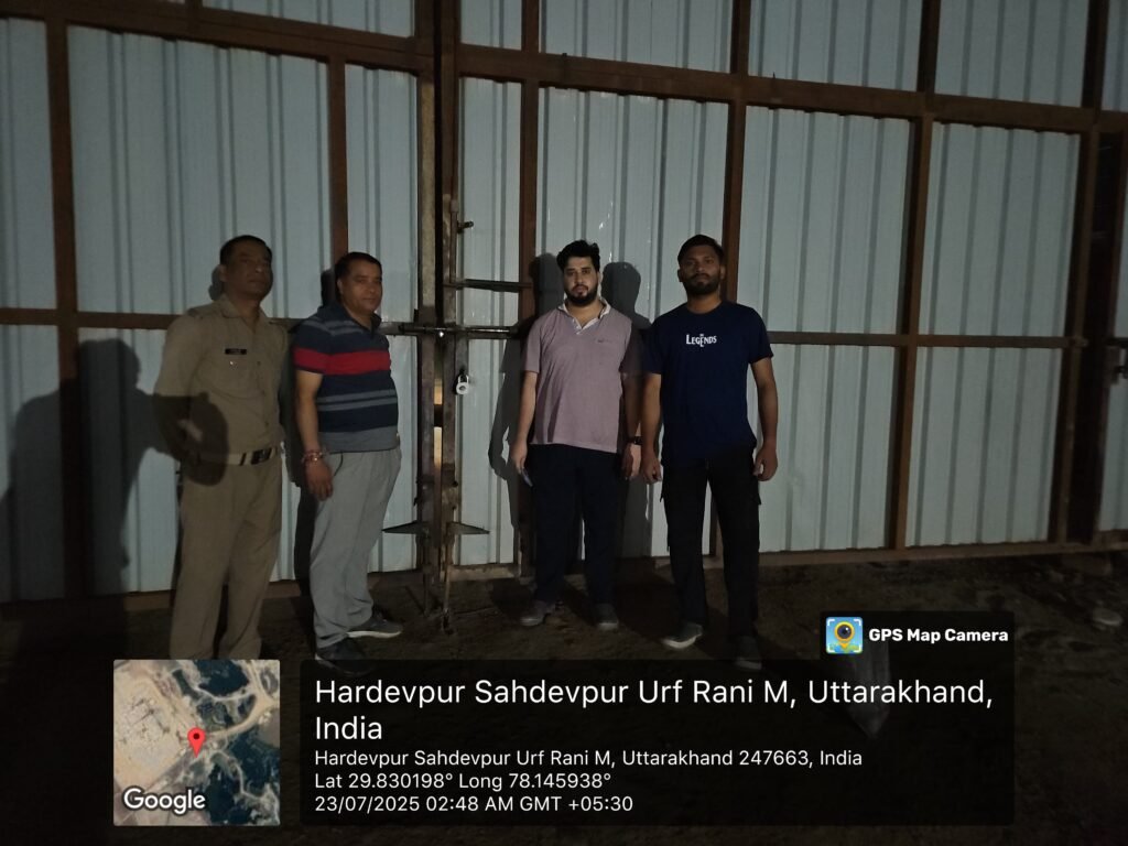 जिलाधिकारी ने तत्काल संज्ञान लेते हुए उन्हें छापेमारी के निर्देश दिए।जिलाधिकारी के निर्देशों के क्रम उनके द्वारा टीम गठित की गई तथा दिनांक 23 जुलाई 2025 को रात्रि 02ः15 बजे रात्रि को जनपद हरिद्वार तहसील के ग्राम सहदेवपुर हरदेवपुर उर्फ रानीमाजरा में अवैध खनन में विभागीय दल के द्वारा मै० श्री शिव शक्ति स्टोन केशर का औचक निरीक्षण किया गया। औचक निरीक्षण के समय पाया गया कि मै० श्री शिव शक्ति स्टोन क्रेशर को दिनांक 10 जुलाई 2025 को सीज किया गया है। क्रेशर को सीज किये जाने के उपरान्त भी क्रेशर स्वामी के द्वारा चौरी से अवैध रूप से उप खनिज लिये जाने के कारण क्रेशर के मैन गेट को मौके पर सीज कर चौकी फेरूपुर में प्राथमिकी दर्ज करायी गयी है ।