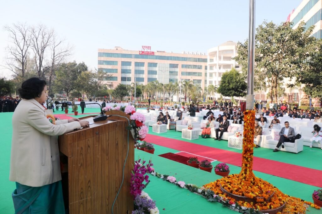 अखिल भारतीय आयुर्विज्ञान संस्थान, एम्स ऋषिकेश में76वां गणतंत्र दिवस समारोह धूमधाम से मनाया गया। गणतंत्र पर्व पर संस्थान की कार्यकारी निदेशक एवं सीईओ प्रोफेसर (डॉ.) मीनू सिंह ने ध्वजारोहण किया । इस अवसर पर उन्होंने भारतीय संविधान सभा के मनीषियों का भावपूर्ण स्मरण किया।