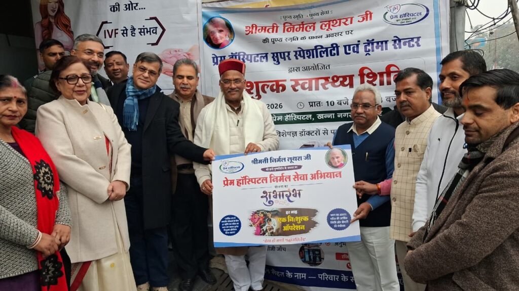मकर संक्रांति के अवसर पर प्रेम हॉस्पिटल सुपर स्पेशलिटी एंड ट्रॉमा सेंटर में निःशुल्क स्वास्थ्य शिविर का आयोजन किया गया। सुप्रीम कोर्ट के वरिष्ठ अधिवक्ता सिदार्थ लूथरा की माता निर्मल देवी लूथरा की पुण्य स्मृति में आयोजित स्वास्थ्य शिविर का शुभारंभ मुख्य अतिथि सांसद त्रिवेंद्र सिंह रावत, विधायक मदन कौशिक, विधायक आदेश चौहान, सुप्रीम कोर्ट के वरिष्ठ अधिवक्ता सिदार्थ लूथरा, भाजपा जिलाध्यक्ष आशुतोष शर्मा, पूर्व राज्यमंत्री विमल कुमार, आईवीएफ विशेषज्ञ डा.संध्या शर्मा, हॉस्पिटल प्रबंधक हिमांशु पालीवाल ने संयुक्त रूप से किया। इस अवसर पर अस्पताल ने प्रत्येक माह एक निःशुल्क सर्जरी करने का संकल्प लिया।