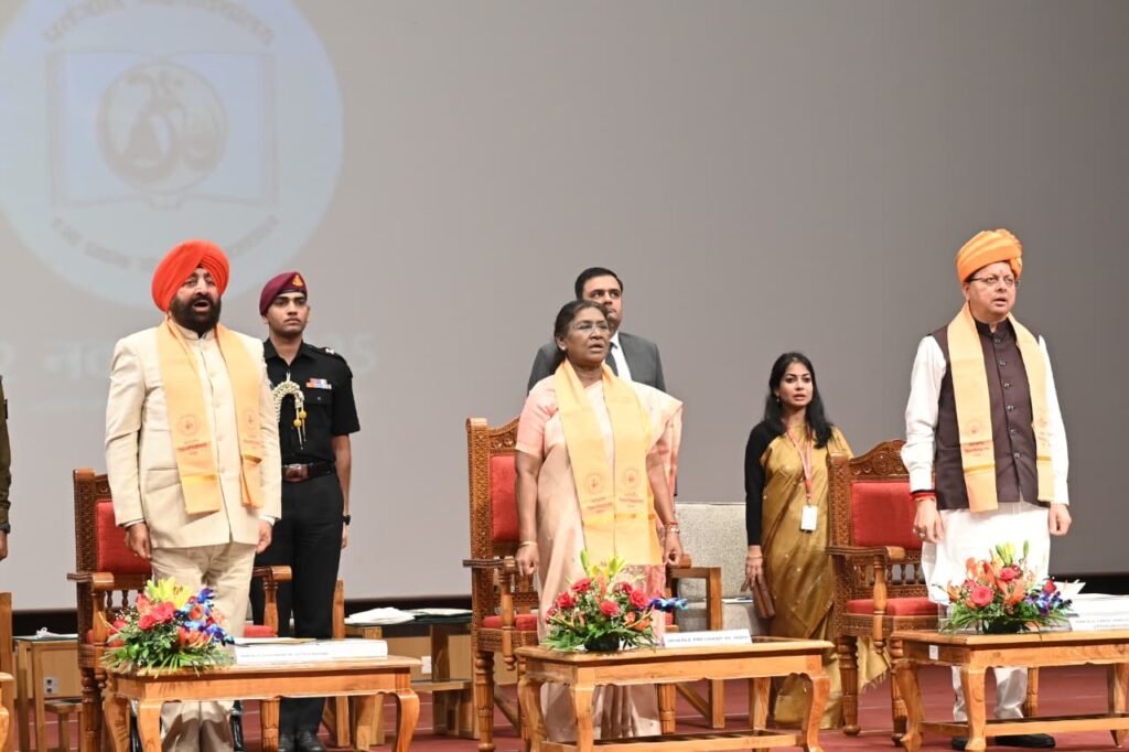 उन्होंने कहा कि महामहिम राष्ट्रपति ने हाल ही में जब लड़ाकू विमान ‘राफेल’ में उड़ान भरी, तो पूरे देश ने उनकेे अदम्य साहस, राष्ट्रभक्ति और दृढ़ संकल्प का प्रेरक उदाहरण देखा। तथा आपके व्यक्तित्व में मातृत्व की ममता, सेवा का संकल्प और राष्ट्र के प्रति अटूट समर्पण का अद्भुत संगम निहित है। यह हम सभी उत्तराखंडवासियों का सौभाग्य है कि उत्तराखंड राज्य स्थापना के 25 वर्ष पूर्ण होने के ऐतिहासिक अवसर पर हमें आदरणीय राष्ट्रपति जी का सान्निध्य और मार्गदर्शन प्राप्त करने का सुअवसर मिल रहा है। इसके लिए मैं, आदरणीय राष्ट्रपति जी का अपनी और समस्त उत्तराखंड वासियों की ओर से कोटि कोटि आभार व्यक्त करता हूँ।