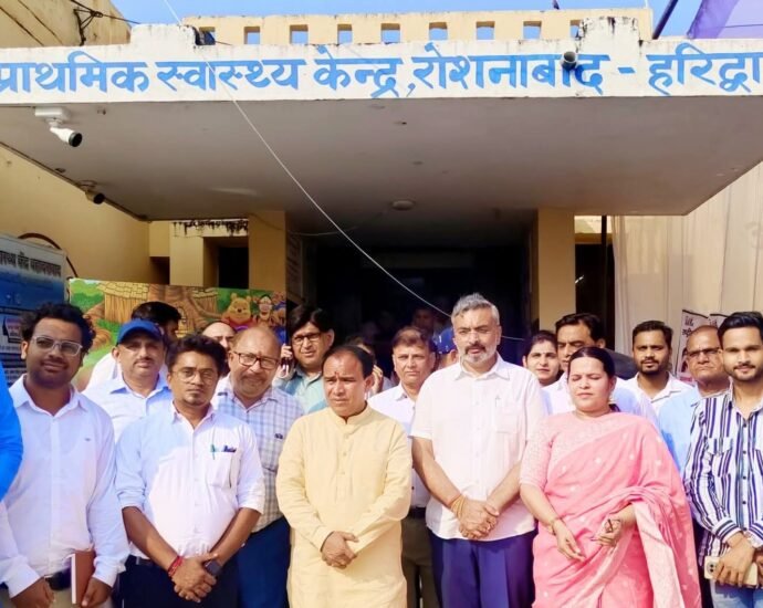 स्वस्थ्य नारी सशक्त परिवार अभियान के अन्तर्गत प्राथमिक स्वास्थ्य केन्द्र रोशनाबाद हरिद्वार निःशुल्क स्वास्थ्य शिविर आयोजित किया गया, स्वास्थ्य शिविर का शुभारंभ मा0 स्वास्थ्य मंत्री उत्तराखण्ड सरकार, डा0 धन सिहं रावत के द्वारा किया गया प्रा0स्वा0 केन्द्र रोशनाबाद में आयोजित स्वास्थय शिविर में 184 लाभार्थियों द्वारा सेवाओं का लाभ लिया गया मा0 मंत्री जी द्वारा बताया गया कि मा0 प्रधानमंत्री श्री नरेन्द्र मोदी के जन्म दिवस दिनांक 17 सितम्बर.2025 से 02 अक्टूबर 2025 तक सम्पूर्ण उत्तराखण्ड में लगभग 4500 निःशुल्क स्वास्थ्य शिविरों का आयोजन किया जायेगा जिसमे प्रदान की जाने वाली सभी सुविधायें निःशुल्क उपलब्ध करायी जा रही है मा0 स्वास्थ्य मंत्री जी ने आम जनमानस से आवाहन किया