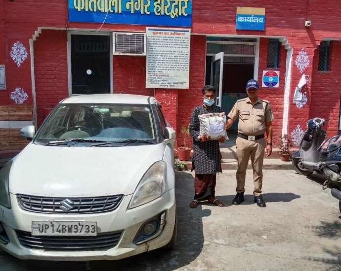 हरिद्वार, 7 सितम्बर। नगर कोतवाली पुलिस ने स्विफ्ट डिजायर कार से गांजे की खेप बरामद की है। गांजा बरामद करने के साथ पुलिस ने कार चालक को गिरफ्तार कर लिया और कार को भी सीज कर दिया है। मादक पदार्थो की तस्करी रोकने के लिए चलाए जा रहे अभियान के तहत चेंिकंग के दौरान पुलिस ने ऋषिकुल मैदान के पास सुनसान जगह पर खड़ी स्विफ्ट डिजायर कार में बैठे चालक से पूछताछ की तो वह सकपका गया। संदेह होने पर पुलिस ने कार की तलाशी ली तो 4 किलो 150 ग्राम गांजा बरामद हुआ। गांजा बरामद होने पर पुलिस ने कार चालक आकिल हुसैन पुत्र साबिर हुसैन निवासी गांव रूकन्दी सराय तुरतीपुरा कोतवाली रूकन्दी सराय जिला सम्भल को गिरफ्तार कर लिया। आरोपी के खिलाफ एनडीपीएस एक्ट के तहत मुकद्मा दर्ज किया गया है। पुलिस टीम में कोतवाली प्रभारी रितेश शाह, एसआई सुनील पंत, कास्टेबल सत्यपाल व जसवीर शामिल रहे।