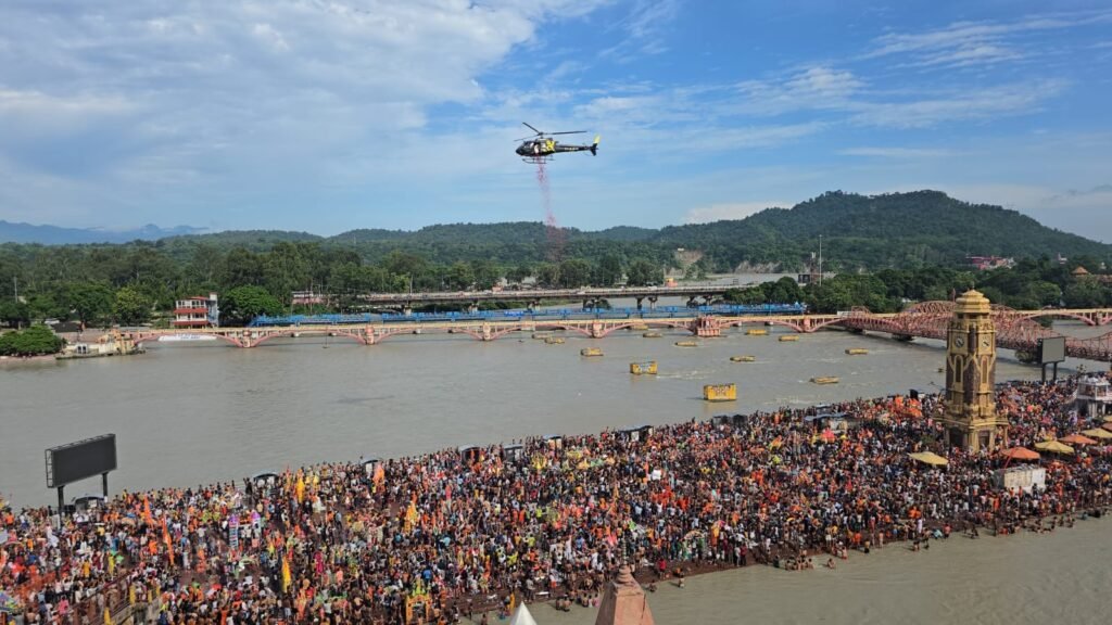 हरिद्वारा आये कांवडीयों एवं शिव भक्तों पर हैलीकॉफ्टर के माध्यम से किया पुष्प वर्षा।