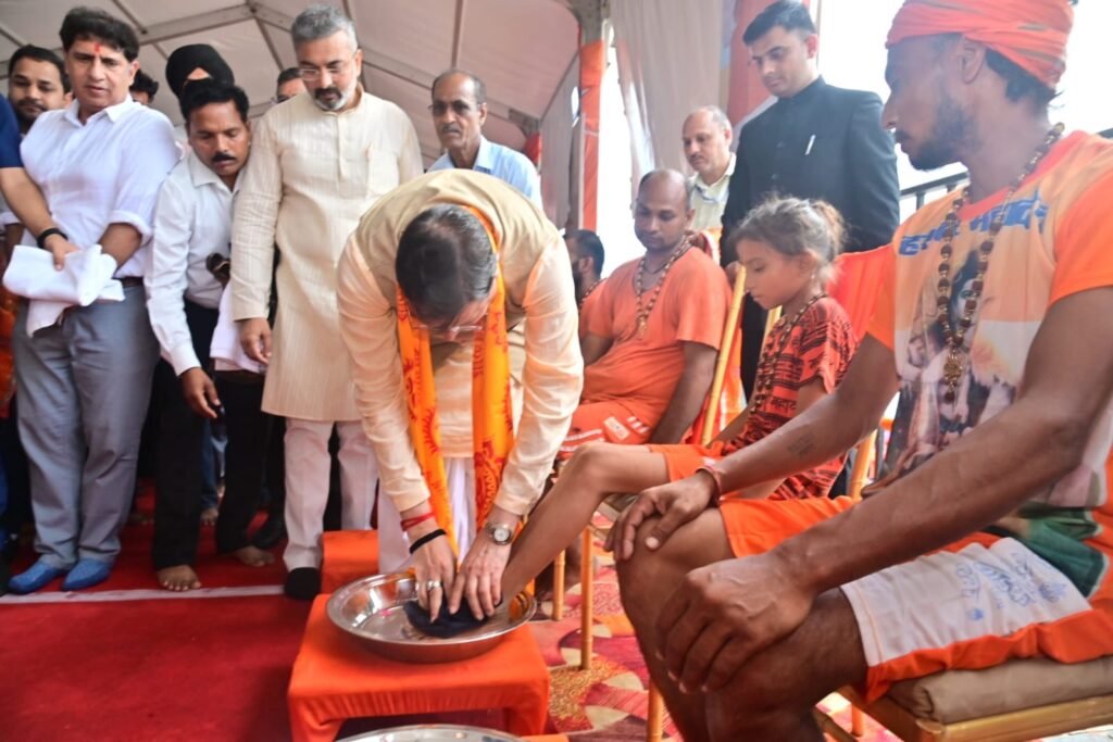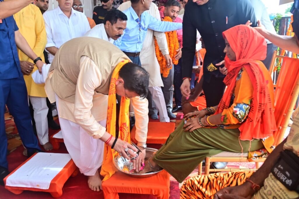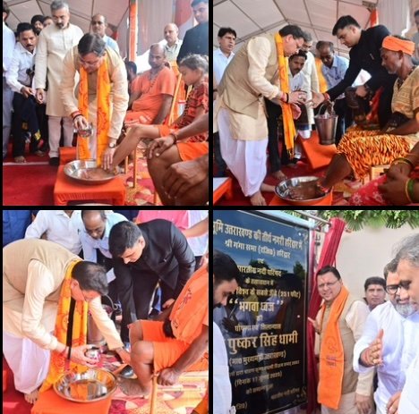 मुख्यमंत्री पुष्कर सिंह धामी ओम पुल में आयोजित कार्यक्रम में कावंडीयों के पांव धोकर (प्रक्षालन) कावंडीयों/शिव भक्तों का किया स्वागत किया।