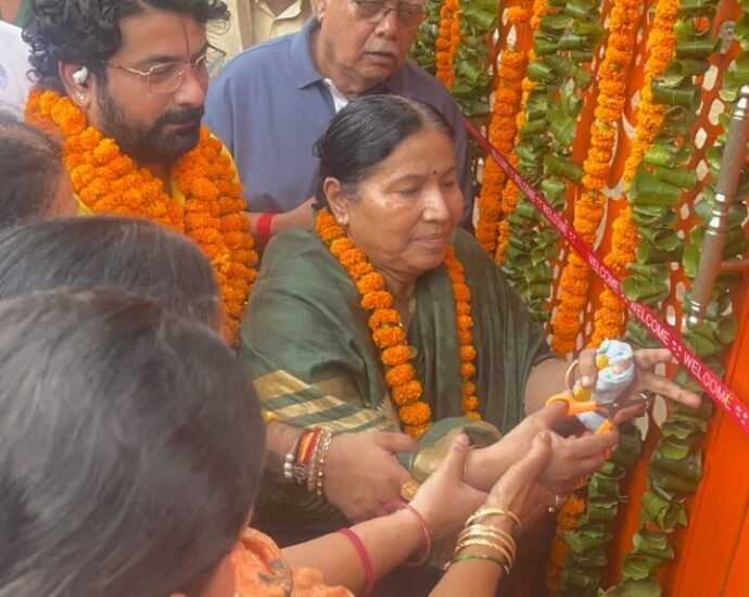 ज्वालापुर। ज्वालापुर स्थित सुप्रसिद्ध गुघाल मंदिर में समाजसेवी स्वर्गीय देवेंद्र जैन की स्मृति में निर्मित भव्य सीताराम द्वार का लोकार्पण स्व.देवेंद्र जैन की धर्मपत्नी सुमन जैन के करकमलों द्वारा किया गया। द्वार का निर्माण जैन परिवार के मोहित जैन एवं रोहित जैन ने कराकर धडा पंचायत फिराहेड़ियान को समर्पित किया है। धड़ा पंचायत फिराहेड़ियान के अध्यक्ष उमाशंकर वशिष्ठ ने जैन परिवार का आभार व्यक्त करते हुए कहा कि समाजसेवी स्वर्गीय देवेंद्र जैन बेहद धर्मपरायण व्यक्ति थे। जैन परिवार द्वारा उनकी स्मृति में कराए गए भव्य द्वार के निर्माण से मंदिर की सुंदरता और भव्यता में वृद्धि होगी। इस अवसर पर धडा पंचायत फिराहेड़ियान के अध्यक्ष उमाशंकर वशिष्ठ, मंत्री सचिन कौशिक, कोषाध्यक्ष अनिल कौशिक सहित रमाकांत मौलातिये, अवधेश भक्त, विपुल मिश्रोटे, सुधीश श्रोत्रिय, अरुण श्रोत्रिय, उमेश लुतिये, वासु मिश्रा, दिनेश प्रधान, मधुकांत श्रोत्रिय, निर्मल गोस्वामी, विजय प्रधान आदि मौजूद रहे।