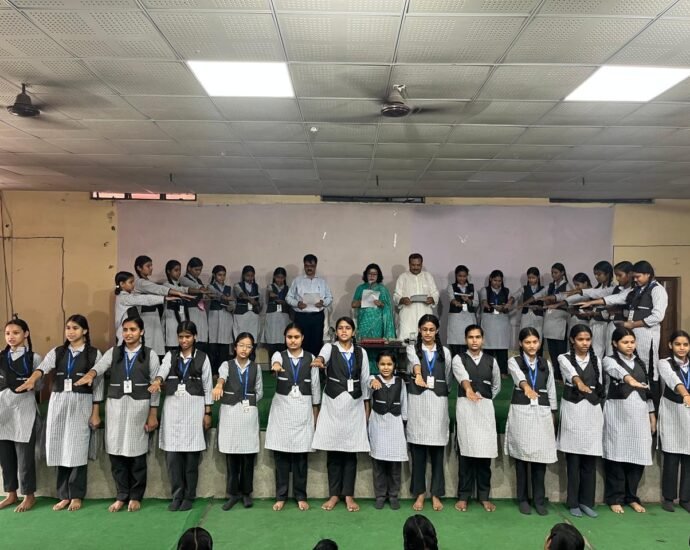 हरिद्वार, 26 जुलाई। भेल सेक्टर-2 स्थित सरस्वती विद्या मंदिर इंटर कालेज में कन्या भारती का गठन किया गया। नवगठित कन्या भारती टीम में लावण्या प्रधानमंत्री, संस्कृति उप प्रधानमंत्री, आरूषि सेनापति, भाविका उप सेनापति, सोनाक्षी न्यायाधीश, प्रतीक्षा उप न्यायाधीश चुनी गयी। मुख्य अतिथी एंजल अकेडमी बहादराबाद की प्रिंसिपल एवं एनसीवीटी वोकेशनल एजुकेशन की अखिल भारतीय सदस्य रश्मि सिंह चौहान ने नवगठित कन्या भारती टीम को शपथ दिलायी। रश्मि चौहान ने कहा कि कन्या भारती के माध्यम से विद्यालय की बालिकाओं को नेतृत्व, सेवा और समाज के लिए उत्तरदायित्व निभाने का अवसर मिलता है। इससे भारत की भावी पीढ़ी को सशक्त बनाने में भी मदद मिलती है।