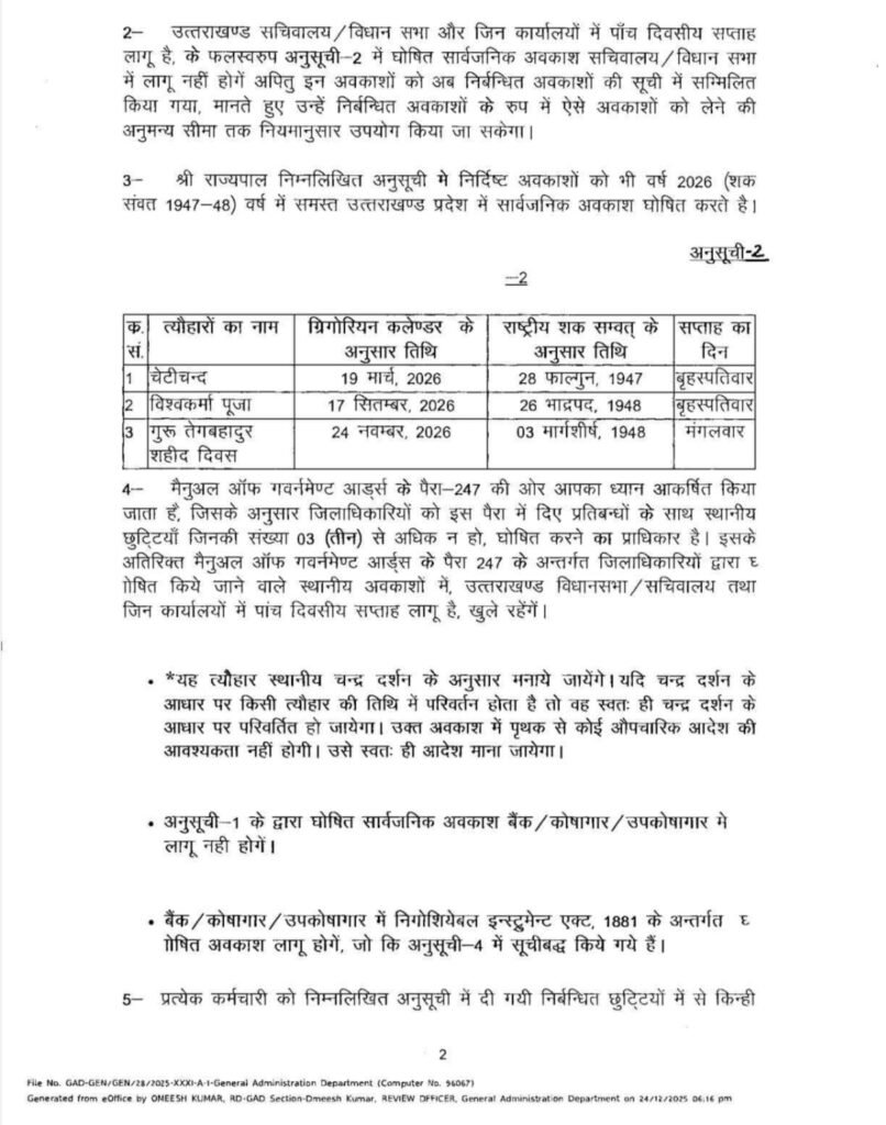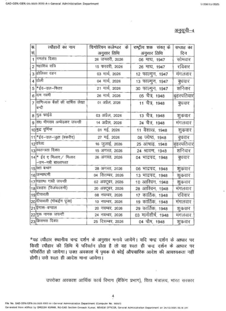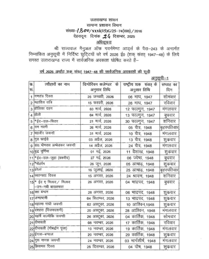 वर्ष 2026 की सार्वजनिक