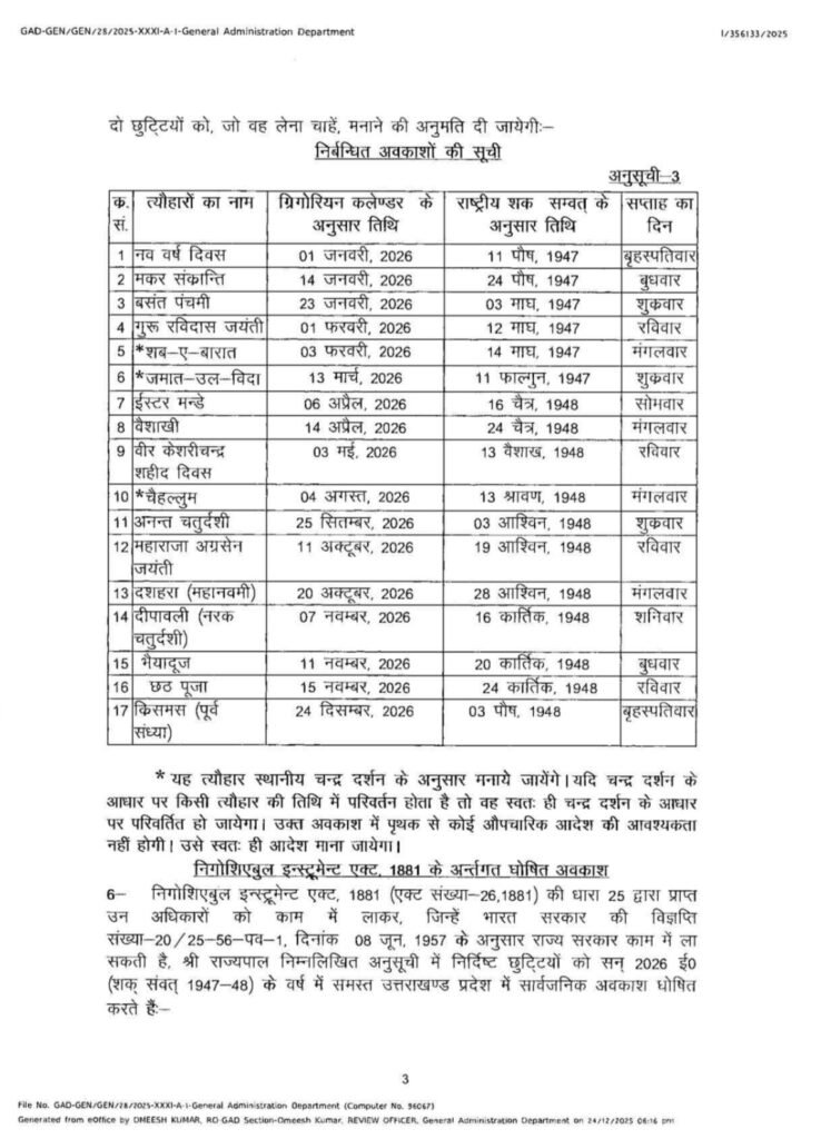 वर्ष 2026 की सार्वजनिक अवकाशों की सूची।