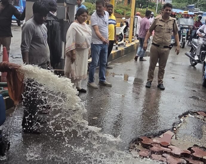 मेयर ने किया जलभराव से जलभराव से प्रभावित भगत सिंह व चंद्राचार्य चौक का निरीक्षण