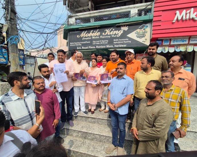 हरिद्वार, 23 सितम्बर। भाजपा द्वारा मनाए जा रहे जीएसटी उत्सव के तहत नगर विधायक मदन कौशिक एवं मेयर किरण जैसल ने चंद्राचार्य चौक क्षेत्र में व्यापारियों से संवाद किया और जीएसटी दरों में छूट के फायदे बताए।