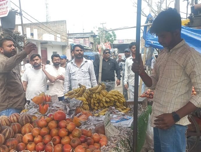 नगर निगम और पुलिस टीम ने हरिलोक में सब्जी मंडी के पास से हटवाया अतिक्रमण