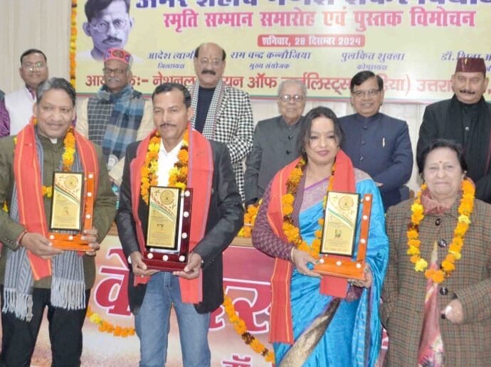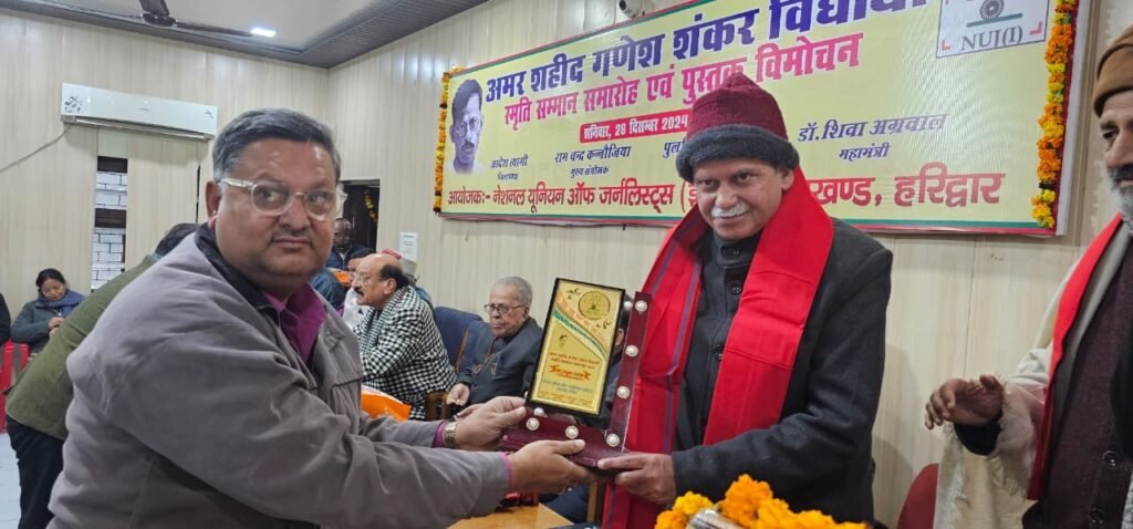 हरिद्वार। नेशनल यूनियन का जर्नलिस्ट्स (इंडिया) उत्तराखंड की जनपद हरिद्वार की इकाई के तत्वावधान में प्रेस क्लब हरिद्वार के सभागार में अमर शहीद गणेश शंकर विद्यार्थी स्मृति सम्मान समारोह एवं डा.शिवा अग्रवाल द्वारा लिखित पुस्तक ‘यादों के दस्तख़त’ का विमोचन कार्यक्रम आयोजित किया गया।