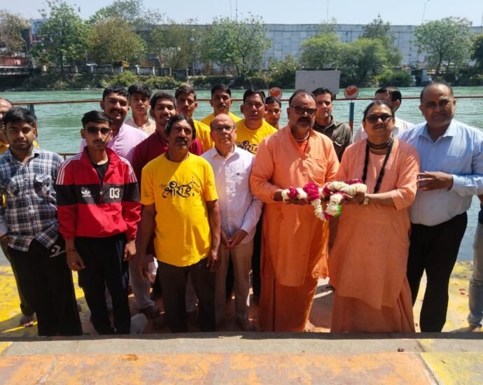 हरिद्वार, 23 मार्च। शहीदी दिवस के अवसर पर श्री अखंड परशुराम अखाड़े के अध्यक्ष पंडित अधीर कौशिक के संयोजन में अखाड़े के सदस्यों ने अग्रसेन घाट पर गंगा में पुष्पांजलि अर्पित कर शहीदे आजम भगत सिंह, सुखदे और राजगुरू को नमन किया गया। पंडित अधीर कौशिक ने कहा कि देश को आजादी दिलाने वाले अमर शहीद बलिदानियों के जीवन दर्शन से युवा पीढ़ी को सीख लेनी चाहिए। उन्होंने कहा कि देश को आजादी दिलाने के लिए अपने प्राणों को न्यौछावर करने वाले वीर शहीदों के बलिदान से प्रेरणा लेकर युवा पीढ़ी को देश के प्रति समर्पित भावना से काम करना चाहिए। उन्होंने कहा कि युवा पीढ़ी नशे से दूर रहकर और एकजुट होकर अन्याय के खिलाफ संघर्ष करे। यही शहीदों को सच्ची श्रद्धांजलि होगी। पंडित पवन कृष्ण शास्त्री एवं मुकेश कुमार शर्मा ने कहा कि अपना जीवन देश को समर्पित करने वाले शहीद ए आजम भगत सिंह, सुखदेव और राजगुरू की देश भक्ति से सीख लेते हुए सभी को देश की तरक्की, एकता एवं अखंडता बनाए रखने में सहयोग करना चाहिए। उन्होंने देश पर मर मिटने वाले अमर शहीदों की मोक्ष की कामना भी की। श्रद्धांजलि देने वालों में शंभू पंत, विवेक कौशिक, संजय शर्मा, इंद्रपाल शर्मा, सूर्यकांत शर्मा, सुनील प्रजापति, सतपाल कुमार, विजय कुमार, विनोद सैनी, शेरसिंह सैनी, विष्णु गौड़, राजीव बिष्ट, अर्णव शर्मा, अध्ययन शर्मा, निखिल कश्यप, मन्नू शर्मा, सुधीर शर्मा आदि शामिल रहे।