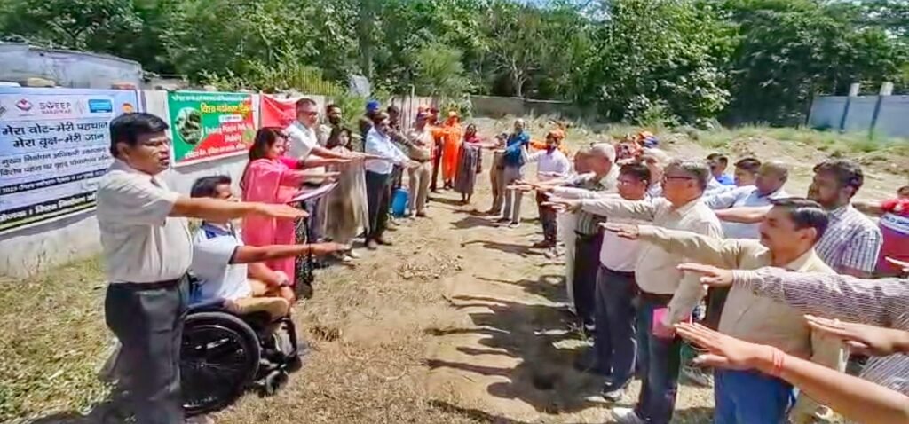 भारत निर्वाचन आयोग द्वारा निर्देशों के क्रम में विश्व पर्यावरण दिवस के अवसर पर ‘वोट फॉर अर्थ, वोट फॉर डेमोक्रेसी’ थीम पर EVMs एवं VVPATs वेयर हाउस एवं विकास भवन परिसर में मुख्य विकास अधिकारी आकांक्षा कोण्डे एवं प्रशानिक अधिकारियों ने जनपद ने वृहद पौधरोपण कर कार्यक्रम का शुभारंभ किया।
