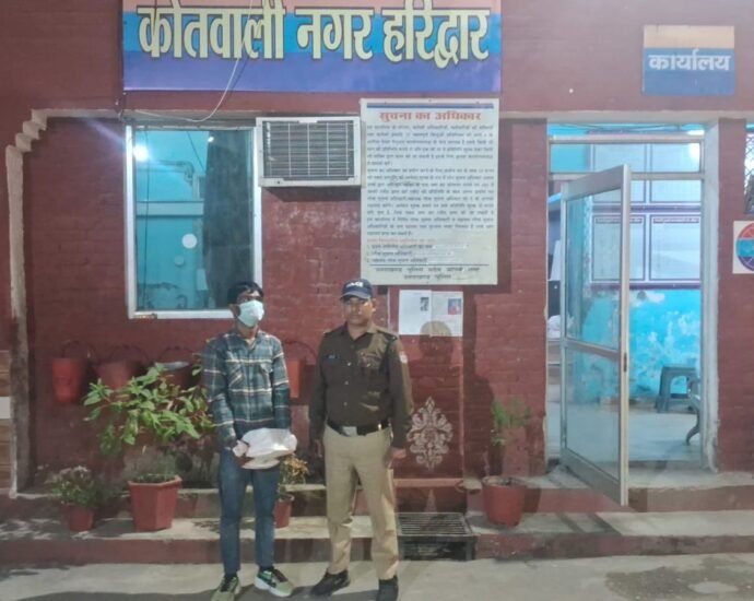 हरिद्वार, 3 नवम्बर। नगर कोतवाली पुलिस ने अवैध रूप से शराब के धंधे में संलिप्त एक आरोपी को गिरफ्तार किया है। रविवार की रात नशा कारोबारियो के खिलाफ अभियान चलाते हुए पुलिस ने बाबू पुत्र शहीद निवासी केशवपुर बस्ती डोईवाला देहरादून को गिरफ्तार कर लिया। आरोपी के कब्जे से देशी शराब माल्टा के 24 टैट्रा पैक बरामद हुए हैं। पुलिस टीम में कांस्टेबल अरविन्द, सुनील असवाल शामिल रहे।