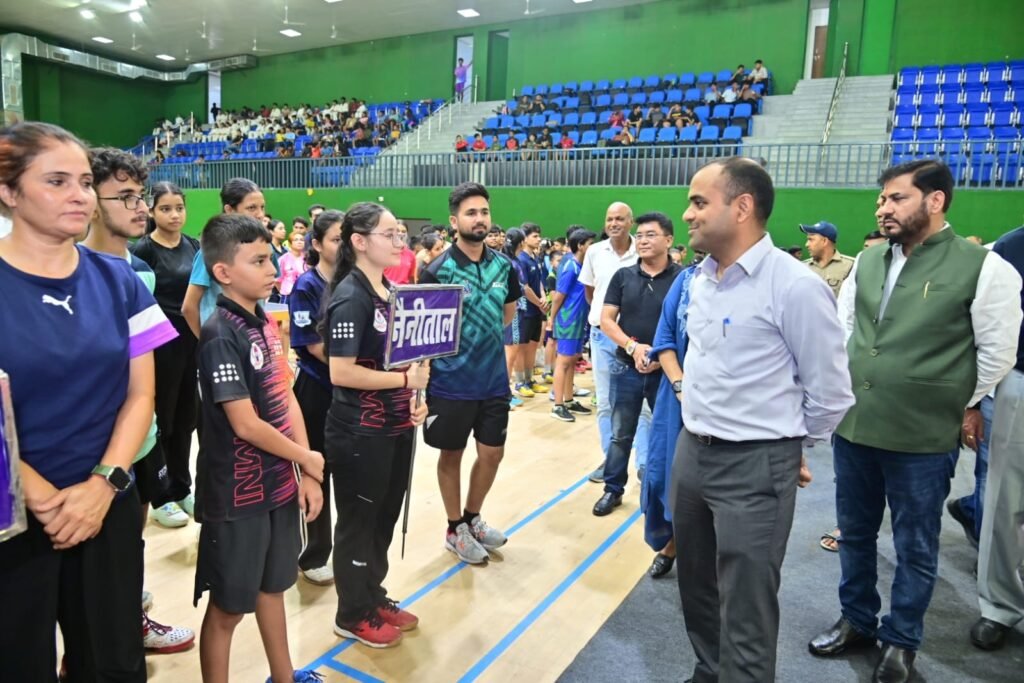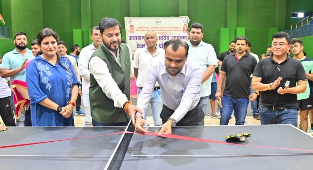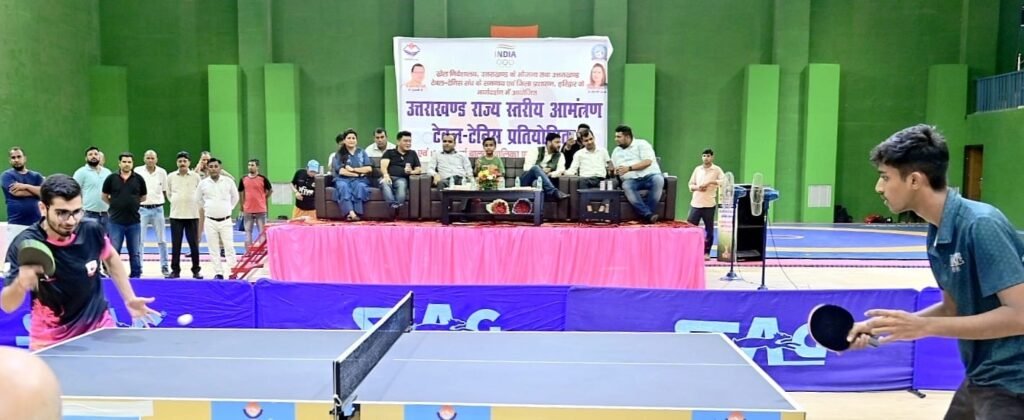 खेल निदेशालय उत्तराखण्ड के तत्वावधान एवं उत्तराखण्ड टेबल टेनिस संघ तथा जिला प्रशासन के मार्गदर्शन में जिला खेल कार्यालय, हरिद्वार द्वारा 17 एवं 19 वर्ष से कम आयु वर्ग के बालक एवं बालिकाओं तथा महिला एवं पुरुषों की ओपन राज्य स्तरीय आमंत्रण टेबल टेनिस प्रतियोगिता का आयोजन दिनांक 20.08.2025 से योगस्थली खेल परिसर रोशनाबाद, हरिद्वार में किया गयाजिसका शुभारंभ जिलाधिकारी मयूर दीक्षित द्वारा रिबन काट किया गया . प्रतियोगिता में उत्तराखण्ड राज्य के 09 जनपदों की टीमे प्रतिभाग कर रही है। प्रतियोगिता में विभिन्न जनपदों से 102 बालक एवं 85 खिलाडियों द्वारा प्रतिभाग किया जा रहा है। जिलाधिकारी द्वारा विभिन्न जनपदों से आये खिलाड़ियों से परिचय प्राप्त किया गया। इस अवसर पर विशिष्ट अतिथि श्री राजीव शर्मा, अध्यक्ष, नगर पालिका परिसर, शिवालिक नगर हरिद्वार, श्री चेतन गुरूंग, उपाध्यक्ष भारतीय टेबल टेनिस संघ, श्री प्रिंस विपिन, पूर्व प्रशिक्षक, भारतीय खेल