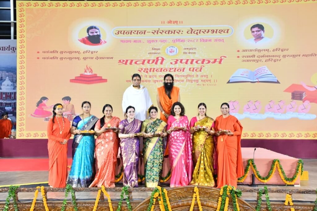 इससे पूर्व पतंजलि योगपीठ में श्रावणी उपाकर्म, रक्षाबंधन पर्व मनाया गया। जिसमें रेनू श्रीवास्तव, साध्वी देवप्रिया, डा.ऋतम्भरा शास्त्री, अंशुल, पारूल के साथ पतंजलि गुरुकुलम् व आचार्यकुलम् की छात्राओं तथा संन्यासिनी बहनों ने स्वामी रामदेव व आचार्य बालकृष्ण को राखी बांधकर रक्षा का आशीर्वाद लिया। साथ ही पतंजलि गुरुकुलम् तथा आचार्यकुलम् के छात्र-छात्राओं का उपनयन संस्कार कराया गया।