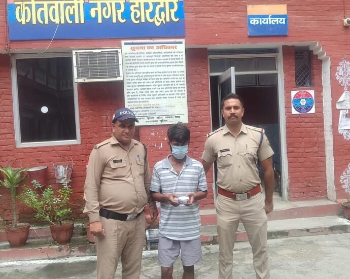 हरिद्वार, 16 अगस्त। बंद घर का ताला तोड़कर लाखों रूपए की ज्वैलरी चोरी करने की घटना के अंजाम देने के आरोपी को नगर कोतवाली पुलिस ने चौबीस घंटे के भीतर गिरफ्तार कर चोरी की गयी 2,80,000 रूपए कीमत की ज्वैलरी बरामद कर ली है। लाखों की चोरी की घटना को अंजाम देने वाला आरोपी मौहल्ले का ही रहने वाला है। शनिवार को इंडस्ट्रियल एरिया इंदिरा बस्ती निवासी प्रीती ने पुलिस को तहरीर देकर घर का ताला तोड़कर घुसे अज्ञात चोर द्वारा संदूक में रखे सोने का मंगलसूत्र, दो जोड़ी झुमके व एक अंगूठी चोरी कर लिए जाने के संबंध में मुकद्म दर्ज कराया था। मुकद्मा दर्ज करने के बाद जांच पड़ताल में जुटी पुलिस ने छानबीन करते हुए पीर की मजार जाने वाले रास्ते पर रपटे के पास से अमन थापा उर्फ़ पोंटी पुत्र सोनू थापा निवासी इंदिरा बस्ती को चोरी किए गए जेवरात समेत दबोच लिया। पुलिस टीम में एसआई अंशुल अग्रवाल, कांस्टेबल परविन्दर, पंकज तिवारी शामिल रहे।