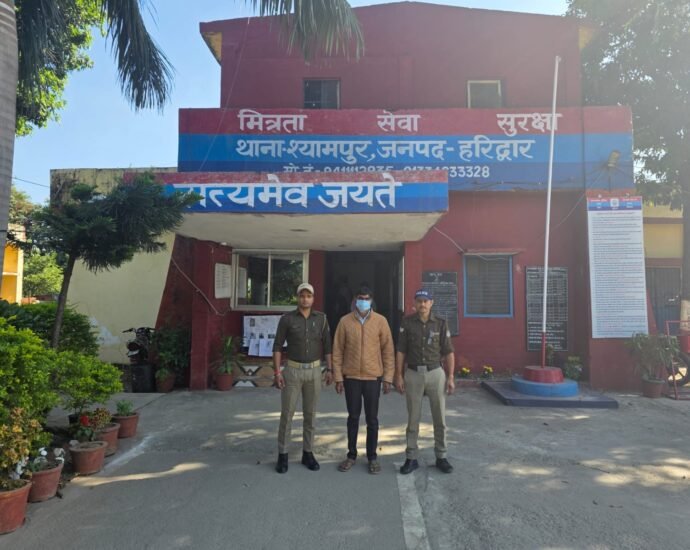 हरिद्वार, 11 नवम्बर। बालिका से दुष्कर्म करने का मामला सामने आया है। परिजनों की तहरीर पर मुकद्मा दर्ज करने के बाद कार्यवाही करते हुए पुलिस ने आरोपी को गिरफ्तार कर लिया है। मामला थाना श्यामपुर क्षेत्र का है। सोमवार को थाना क्षेत्र के एक गांव निवासी महिला ने पुलिस को तहरीर देकर गांव के ही एक व्यक्ति को नामजद करते हुए नाबालिग पुत्री को जंगल में ले जाकर जबरदस्ती दुष्कर्म करने आरोप लगाते हुए मुकद्मा दर्ज कराया था। पॉक्सो व अन्य संबंधित धाराओ में मुकद्मा दर्ज करने के बाद आरोपी की गिरफ्तारी के लिए गठित पुलिस टीम ने चंद घंटों के भीतर ही आरोपी राजीव पुत्र रामौतार को गिरफ्तार कर लिया।