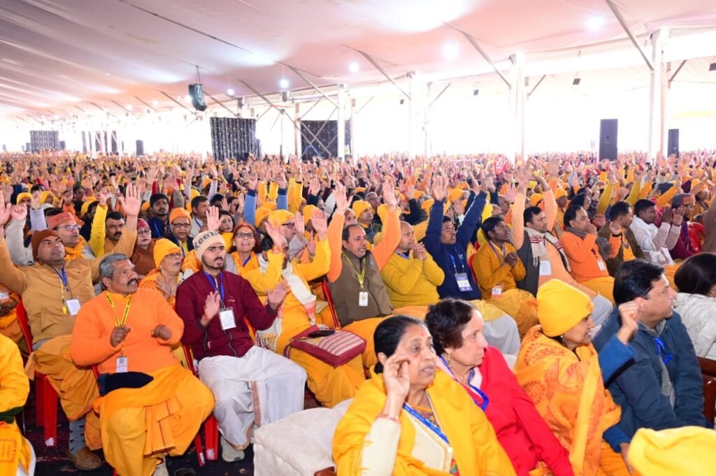 अखिल विश्व गायत्री परिवार से डॉ. चिन्मय पांड्या ने कहा कि गायत्री परिवार का मूल दर्शन समाज से विमुख होना नहीं, बल्कि समाज में रहकर मानव कल्याण और सामाजिक उत्थान के कार्यों को आगे बढ़ाना है। उन्होंने कहा कि संस्थान प्राचीन वेद, उपनिषद और गीता से प्रेरणा लेते हुए आधुनिक तकनीक को आत्मसात कर शिक्षा, प्रशिक्षण और राष्ट्र निर्माण के कार्यों में सक्रिय भूमिका निभा रहा है। उन्होंने कहा कि सनातन धर्म रक्षा के लिए राष्ट्र धर्म रक्षा जरूरी हैं।