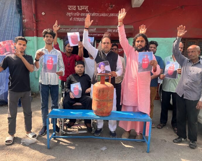 रसोई गैस की किल्लत को लेकर सपा कार्यकर्ताओं ने किया प्रदर्शन