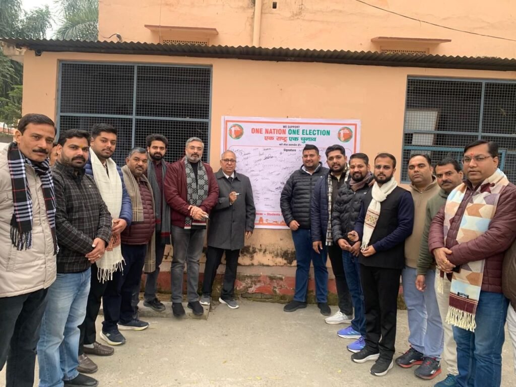 एक राष्ट्र एक चुनाव की मुहिम को लेके एस एम जे एन पीजी कॉलेज मैं स्टूडेंट्स फॉर वन नेशन वन इलेक्शन हस्ताक्षर अभियान चलाया गया जिसमे अनेकों स्टूडेंट्स द्वारा अपने हस्ताक्षर कर इस मुहिम को अपनी अपनी स्वीकृति दी गई।इस अवसर पर भाजपा जिला अध्यक्ष आशुतोष शर्मा ने वन नेशन वन इलेक्शन का समर्थन करते हुए भारतीय लोकतंत्र मैं वन नेशन वन इलेक्शन का महत्त्व समझाया और सभी स्टूडेंट्स को इस मुहिम मैं बढ़ चड़ कर हिस्सा लेने के लिए प्रेरित किया।