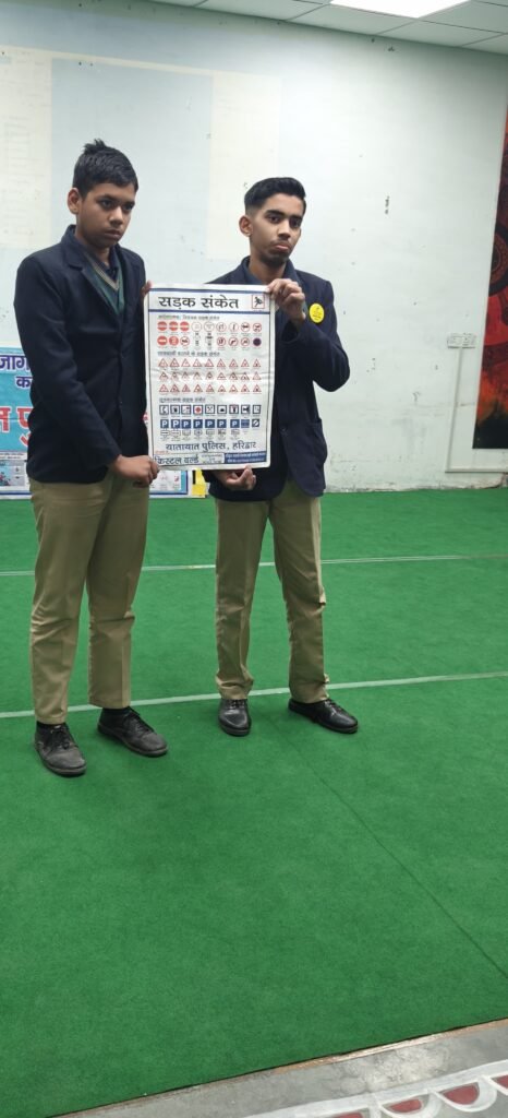 आज निदेशालय यातायात के आदेश के क्रम में पुलिस अधीक्षक यातायात महोदय के आदेशानुसार BML मुंजाल ग्रीन मिडास स्कूल रोशनाबाद हरिद्वार में यातायात जागरूकता कार्यक्रम का आयोजन किया गया जिसमें अपर उपनिरीक्षक यातायात प्रदीप कुमार सिंह तथा अपर उप निरीक्षक यातायात वीरेंद्र पांडे द्वारा छात्र एवं छात्राओं को यातायात संबंधी सभी जानकारियां प्रदान की गई। उनको बताया गया कि दुपहिया वाहन पर तीन सवारी न बैठाए हेलमेट का प्रयोग करें, वाहन चलाते समय मोबाइल का प्रयोग ना करे, नाबालिग द्वारा वाहन ना चलाया जाए आदि उनको ट्रैफिक आई ऐप, गोल्डन आवर, गुड सेमीरिटन ,ट्रैफिक साइन और ट्रैफिक रूल्स आदि के विषय में भी बताया गया।