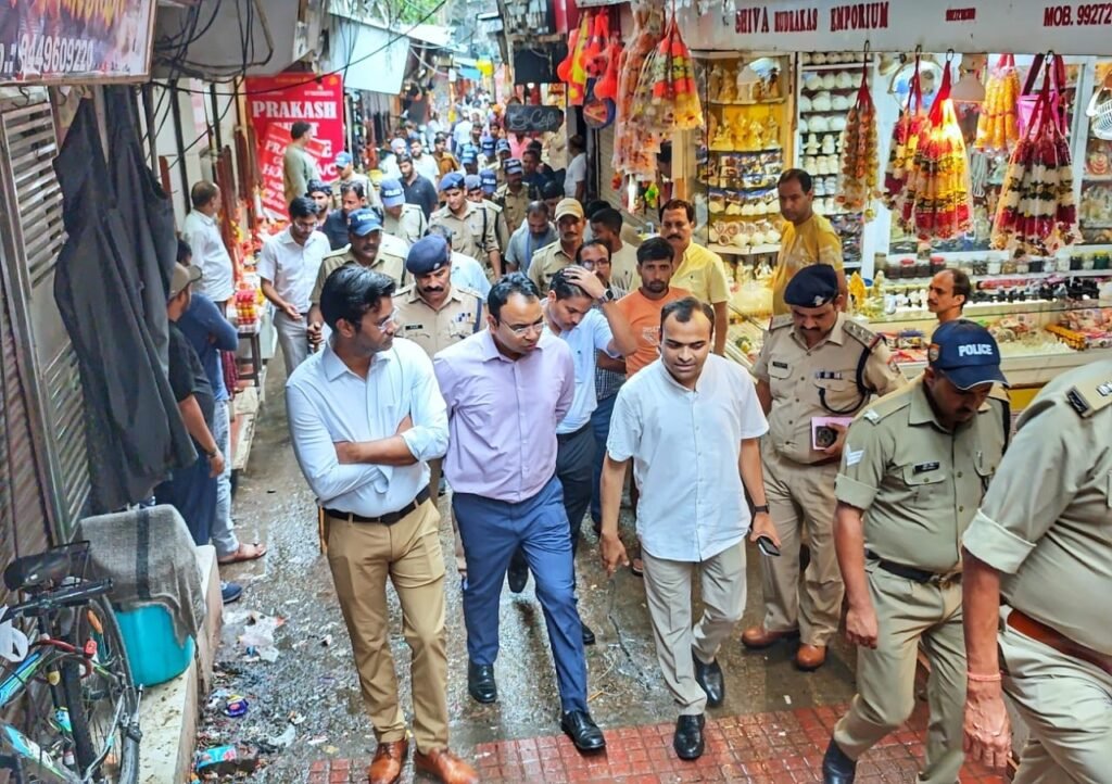 सड़क के किनारे बनी नालियों के ऊपर किए गए अतिक्रमण एवं लगाई गई दुकानों को नगर निगम एवं पुलिस को दिए तत्काल हटाने के निर्देश।