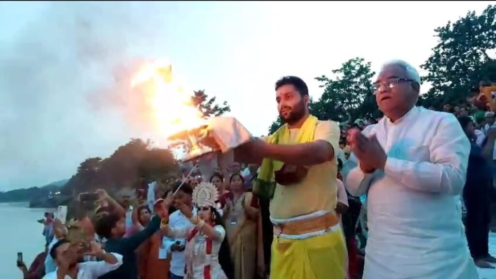 हरकी पौड़ी ब्रह्मकुंड पर होने वाली मां गंगा की दिव्य और भव्य आरती पूरे विश्व में विख्यात है। मगर आज धर्मनगरी हरिद्वार में भारतीय संस्कृति फाऊंडेशन द्वारा परमार्थ घाट पर आयोजित कार्यक्रम में मां गंगा की आरती का विश्व रिकॉर्ड बनाया गया। गंगा नृत्य कला महोत्सव में कथक, नृत्य, संगीत के माध्यम से देश भर से आए कलाकारों ने अद्भुत प्रस्तुति देकर लोगों को मंत्रमुग्ध कर दिया। कार्यक्रम में 14 सो कलाकारों द्वारा प्रतिभाग किया गया। कार्यक्रम ऑनलाइन और ऑफलाइन आयोजित किया गया, जिसमें देश ही नहीं बल्कि विदेशों से भी बड़ी संख्या में गंगा भक्त शामिल हुए। वहीं प्रतिभाग करने वालों को हाई रेंज बुक ऑफ़ वर्ल्ड रिकॉर्ड का सर्टिफिकेट संस्था के डायरेक्टर श्रीकांत द्वारा प्रदान किया गया।