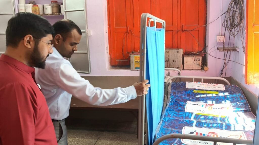 डीएम ने किया मन्दिर में बने चिकित्सा कक्ष का निरीक्षण।