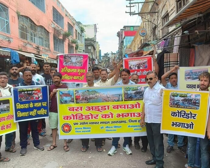 हरिद्वार के व्यापार और बस अड्डे को बचाने को लेकर सड़को पर उतरकर व्यापारियों ने की प्रदर्शन