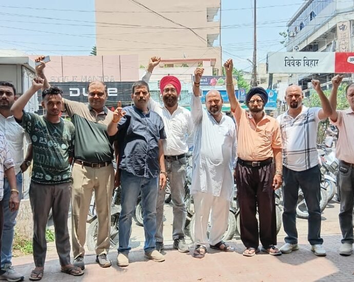 अघोषित बिजली कटौती के विरोध में न्यू चंद्राचार्य व्यापार मंडल के व्यापारियों ने किया प्रदर्शन