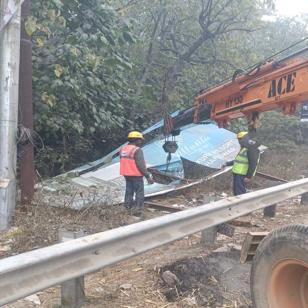 अधिशासी अभियंता एनएचएआई अतुल शर्मा ने अवगत कराया है कि जिलाधिकारी के निर्देशों के अनुपालन में राष्ट्रीय राजमार्ग संख्या 334 के किनारों से एवं रानीपुर झाल से बहादराबाद बाईपास तक एवं मंगलौर क्षेत्रांतर्गत अवैध रूप एवं बिना अनुमति के लगाए गए होर्डिंग एवं 14 बड़े यूनीपोल को राष्ट्रीय राजमार्ग प्राधिकरण द्वारा अधिकृत एजेंसी की टीम द्वारा हटाया गया। उन्होंने यह भी अवगत कराया है कि राष्ट्रीय राजमार्ग के किनारे बनाए गए खोखे, झुगी झोपड़ी को भी हटाया जा रहा है।