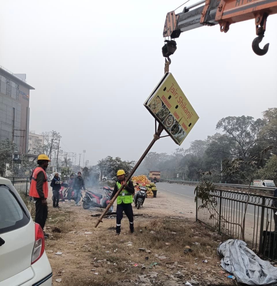 राष्ट्रीय राजमार्ग पर बिना अनुमति के लगाया गए होर्डिंग एवं बोर्ड को एनएचएआई द्वारा हटाया गया