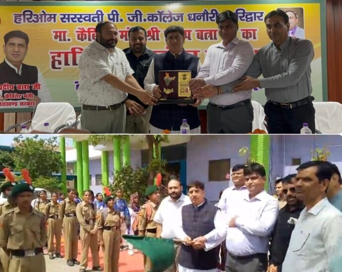 कैबिनेट मंत्री बनने के बाद पहली बार धनौरी पहुंचे रुड़की विधायक प्रदीप बत्रा का हरिओम सरस्वती पीजी कॉलेज धनौरी में भव्य स्वागत किया गया। शिक्षक,शिक्षिकाओं, कर्मचारियों और छात्र-छात्राओं ने पुष्प वर्षा की। कैबिनेट मंत्री प्रदीप बत्रा ने महाविद्यालय के संस्थापक स्वर्गीय डॉ तेजवीर सिंह सैनी की प्रतिमा पर पुष्पांजलि अर्पित की। छात्र-छात्राओं को संबोधित करते हुए प्रदीप बत्रा ने कहा कि ग्रामीण क्षेत्र के युवाओं को आधुनिक शिक्षा से जोड़ने में इस संस्था का बड़ा योगदान है। सकारात्मक सोच हमेशा फलीभूत होती है। इस महाविद्यालय के संस्थापक ने सकारात्मक सोच के साथ ही इसकी स्थापना की और आज वंचित वर्ग के छात्र-छात्राएं इसमें शिक्षा ग्रहण कर रहे हैं। उन्होंने कहा कि उनका पूरा जीवन असहाय लोगों की सेवा को समर्पित है।